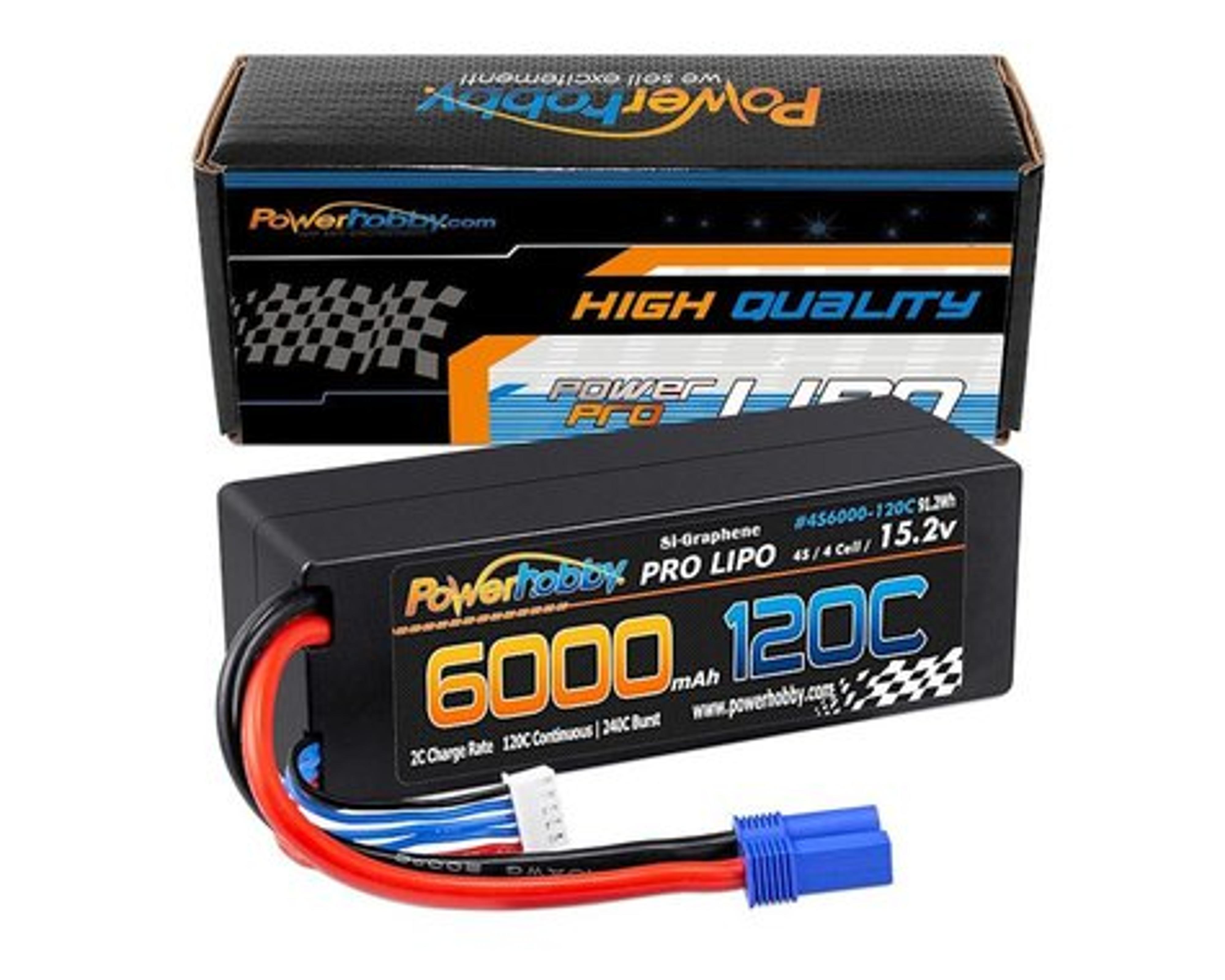 This is a 4S 15.2V 6000mAh 120C Graphene and HV LiPo battery with EC5 plug hard case by Power Hobby.