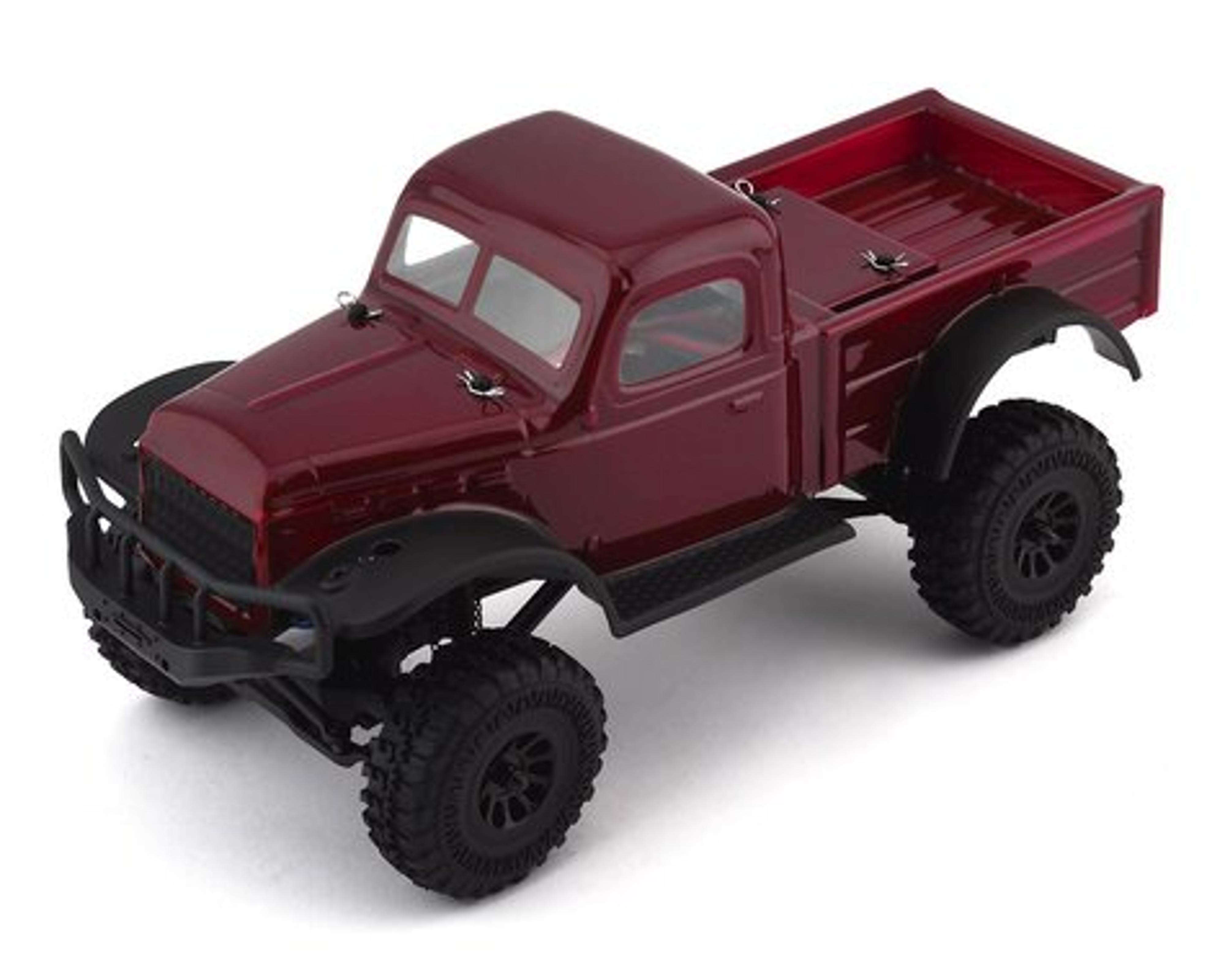 Not everyone wants to spend time to build, paint and trim their crawler, but many are looking for an easy to carry vehicle with same chassis design and functionality as bigger vehicles. Additional features such as the realistic scale like body, injection molded oil filled shock absorbers, lights, three speed electronic transmission and great crawling performance all contribute to this complete set-up. This kit is available with either a dark maroon or a green body.