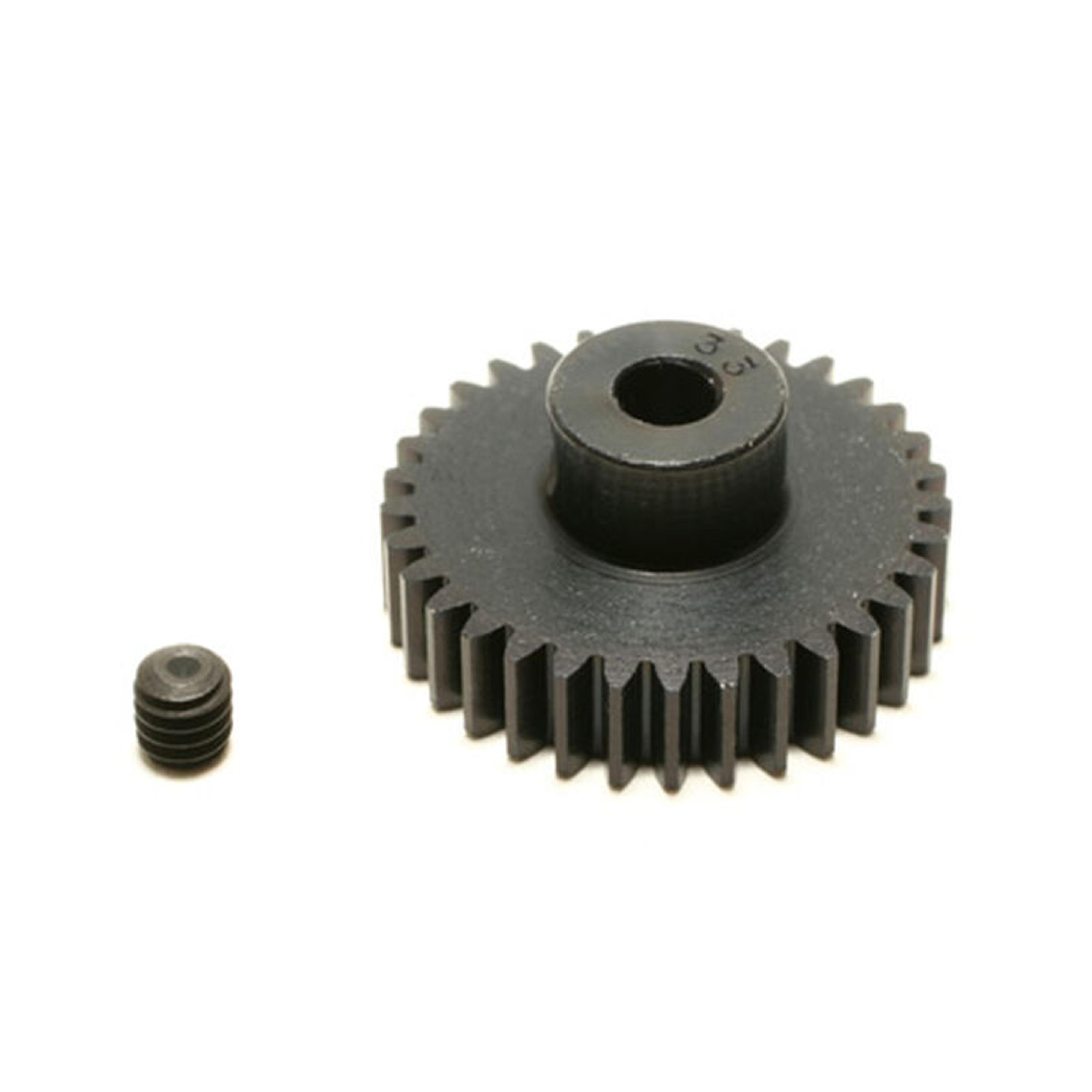 The "Pro" Pinions are precision machined from aircraft aluminum, lightened and then they're coated twice with a super hard, black anodize. Recommended for onroad, but they can be run off road. Pinions are stamped with tooth number. 1/8 inch bore. One 5-40 set screw included.