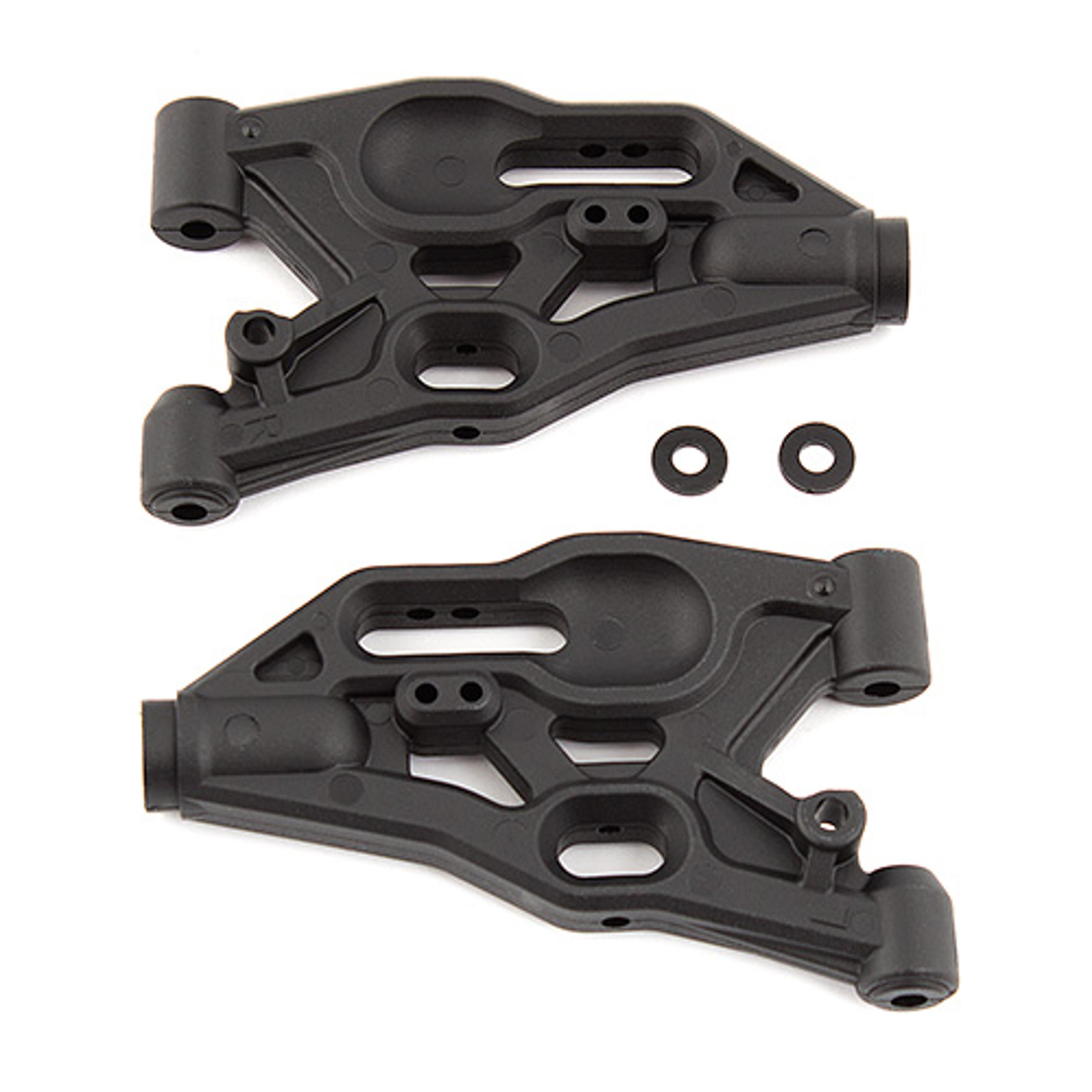 This is a replacement Team Associated Front Arm Set, intended for use with the RC8B3 Nitro Buggy. This set includes one left and one right side arm, as well as two plastic arm spacers. These arms are directional!